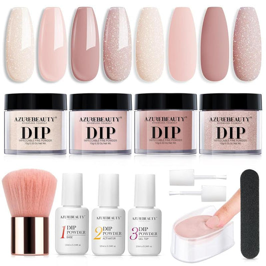 AZUREBEAUTY 4 Colors Dip Powder Nail Starter Kit, Dipping Powder Set with Base Top Coat Activator Essential Liquid, All-In-One Nail Art Manicure Tools DIY Beginner Kit