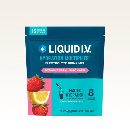 Liquid I.V. Hydration Multiplier - Strawberry Lemonade - Hydration Powder Packets | Electrolyte Powder Drink Mix | Convenient Single-Serving Sticks | 8 Vitamins & Nutrients | 1 Pack (16 Servings)