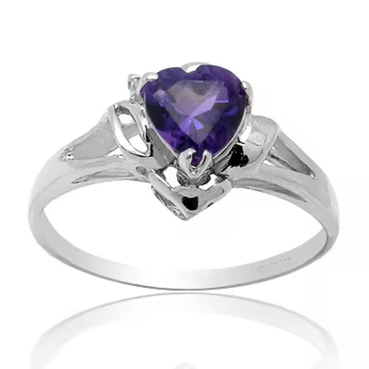 Romantic Heart Crystal Ring Fopr Woman 5Mm Natural Amethyst Ring 925 Sterling Silver Amethyst Ring Birthday Gift for Woman